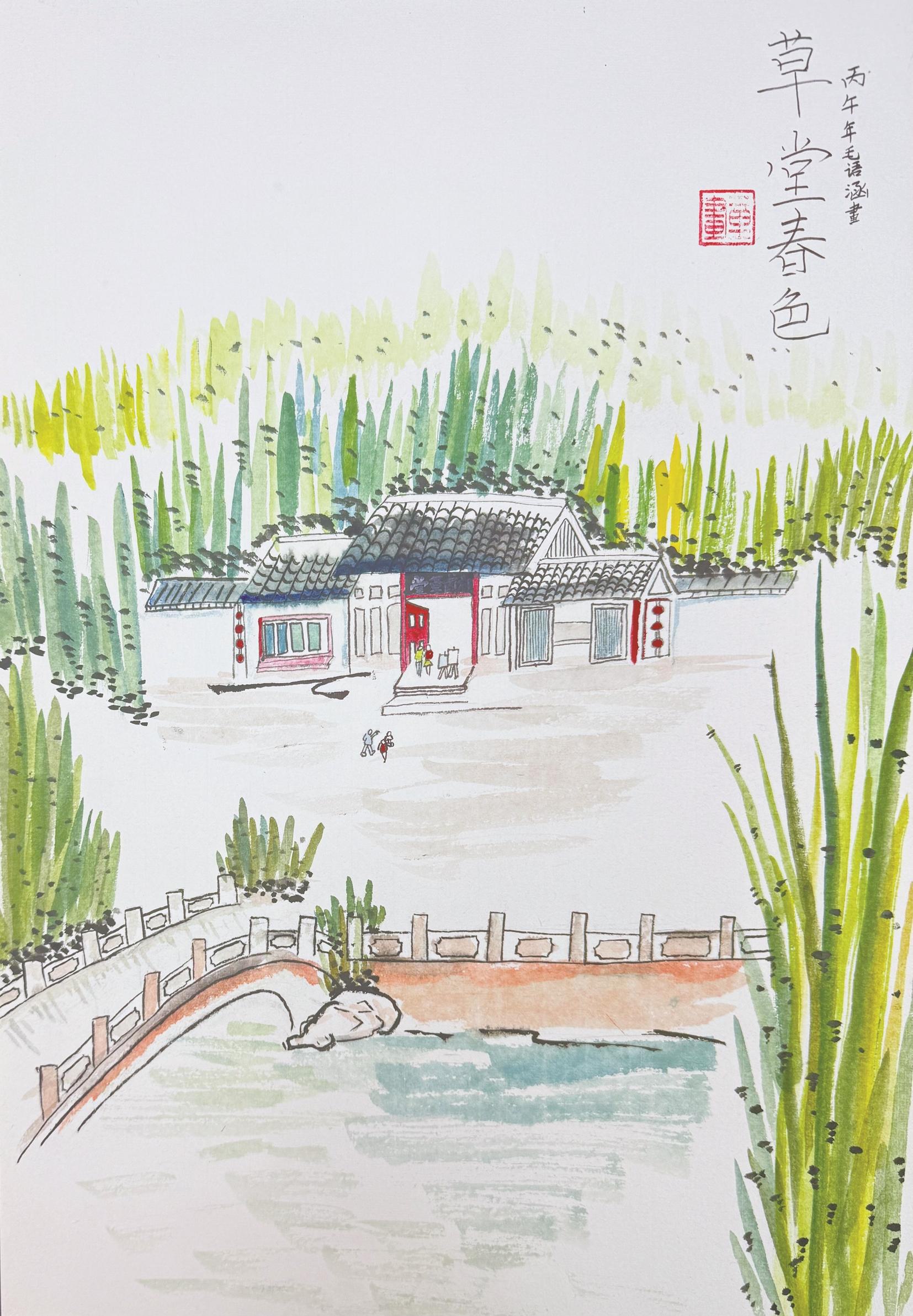 草堂春色 余姚市第二实验小学北校区406班毛语涵(证号J26403453)指导老师:王静亚